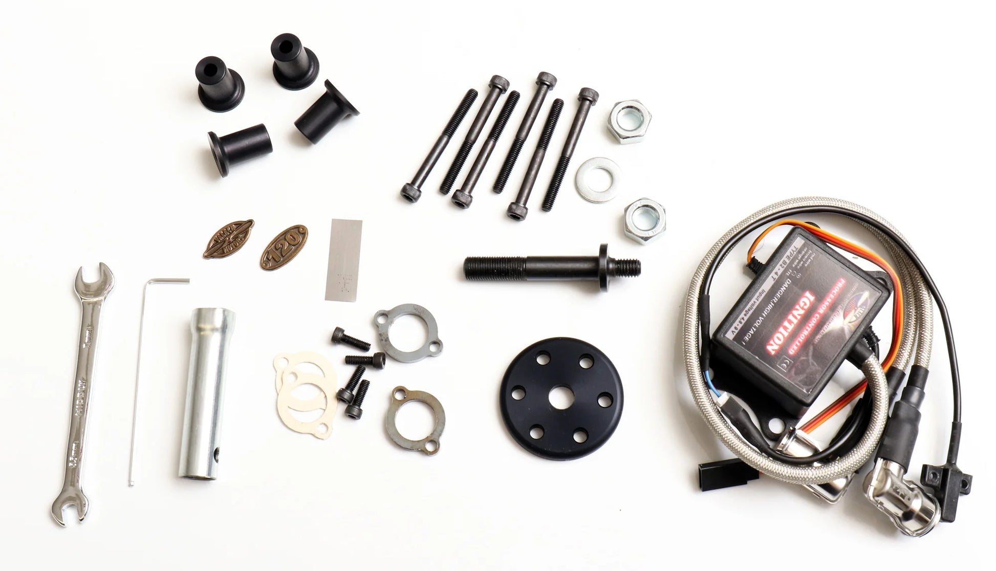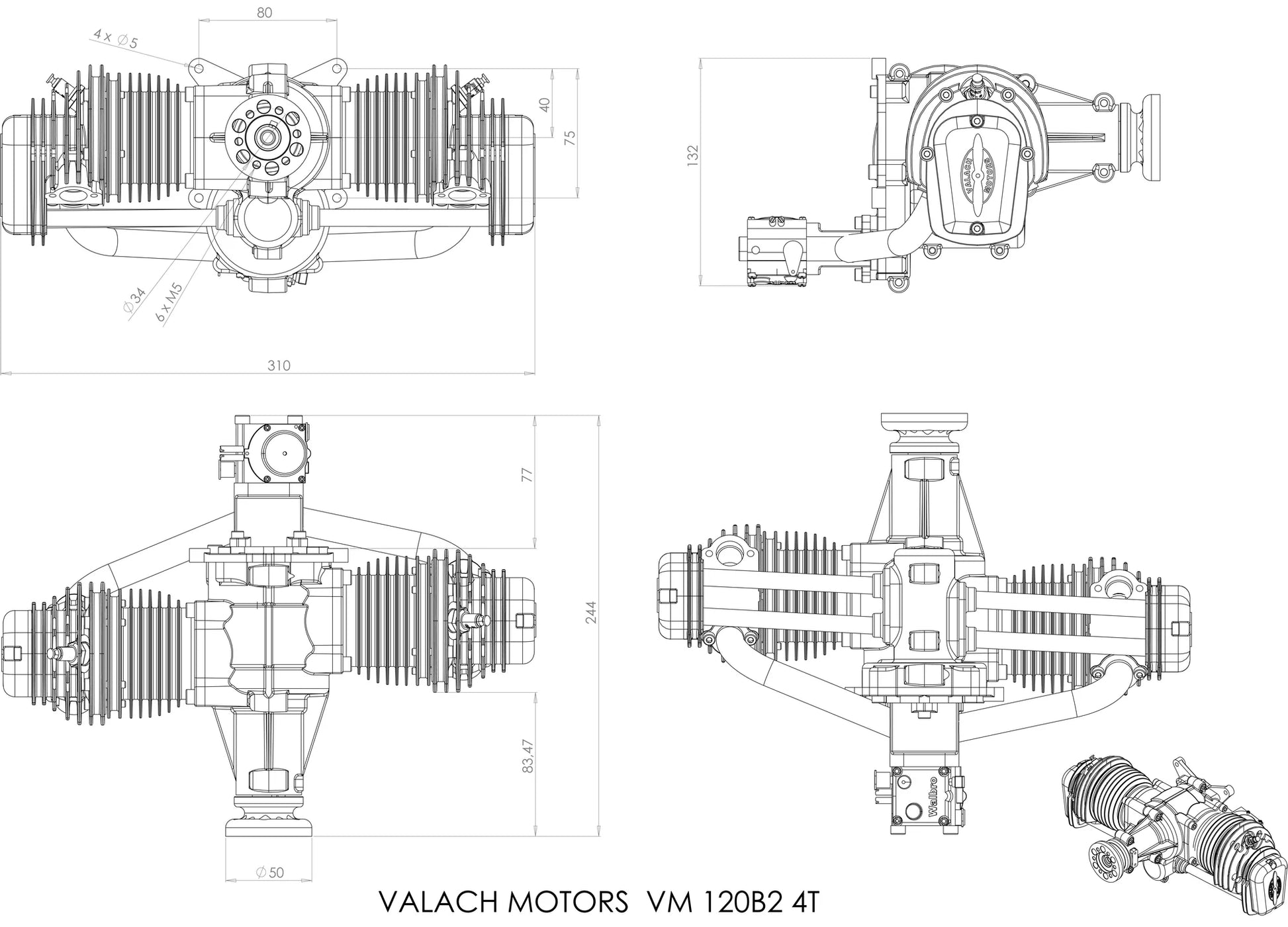 Fiala 120cc opposed twin cylinder gas 4stroke engine with electronic ignition